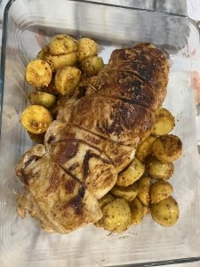 - Begin rolling the pork loin, starting at short end and ending with the fat side facing upwards. Watch my video tutorial to see how it’s done!