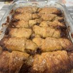 This dessert recipe involves wrapping Granny Smith apple slices in crescent roll dough, then baking them in a rich buttery sauce made with sugar, cinnamon, vanilla, and Mountain Dew. The soda adds a unique citrusy sweetness and helps create a caramel-like glaze as it bakes.