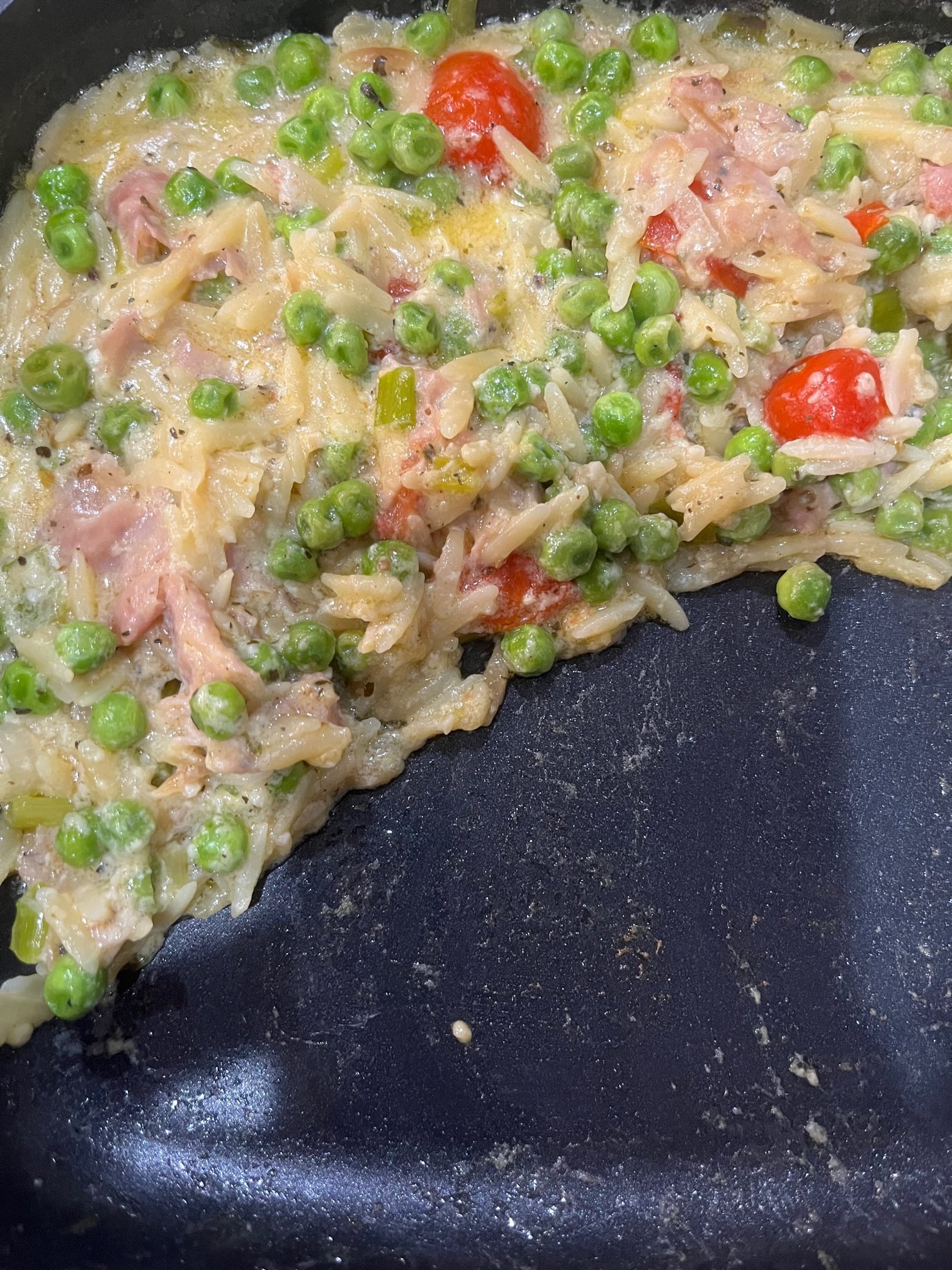 Creamy Orzo with Prosciutto and Peas