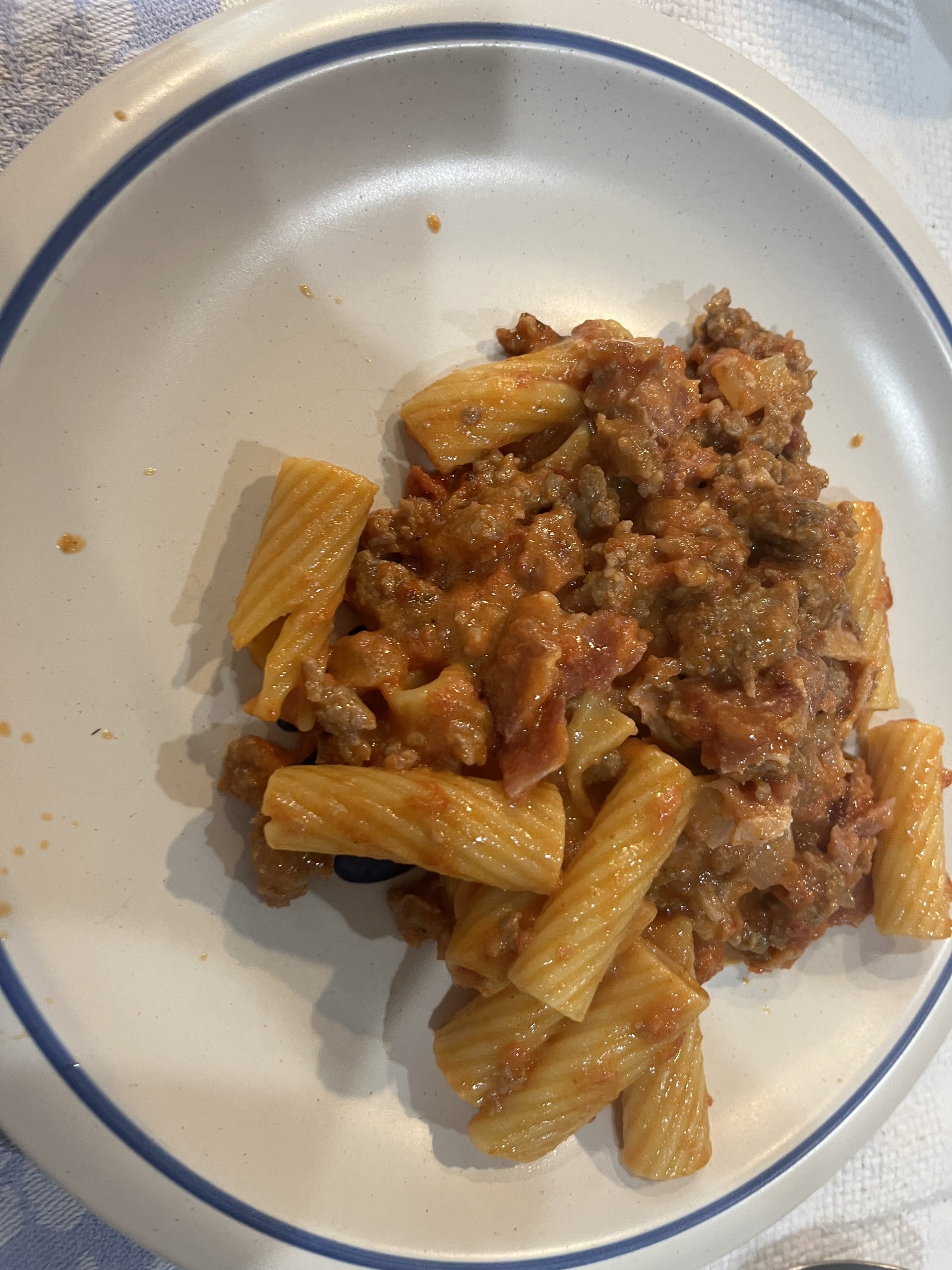 Rigatoni With Sausage, Bacon, and Egg Yolks