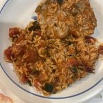 Imagine juicy, pan-seared pork chops, seasoned to perfection, resting atop a bed of fluffy, flavorful Spanish rice infused with tomatoes, bell peppers, onions, and a symphony of spices. Each forkful marries the savory essence of perfectly cooked pork with the colorful medley of vegetables and aromatic rice, creating a mouthwatering experience that captures the spirit of Spanish cuisine.