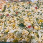 - In a large bowl, combine hash browns, corn, onion, bell pepper, jalapeños, butter, salt, pepper and 1 cup of the cheese. Pour into prepared baking dish. Bake for 20 minutes.