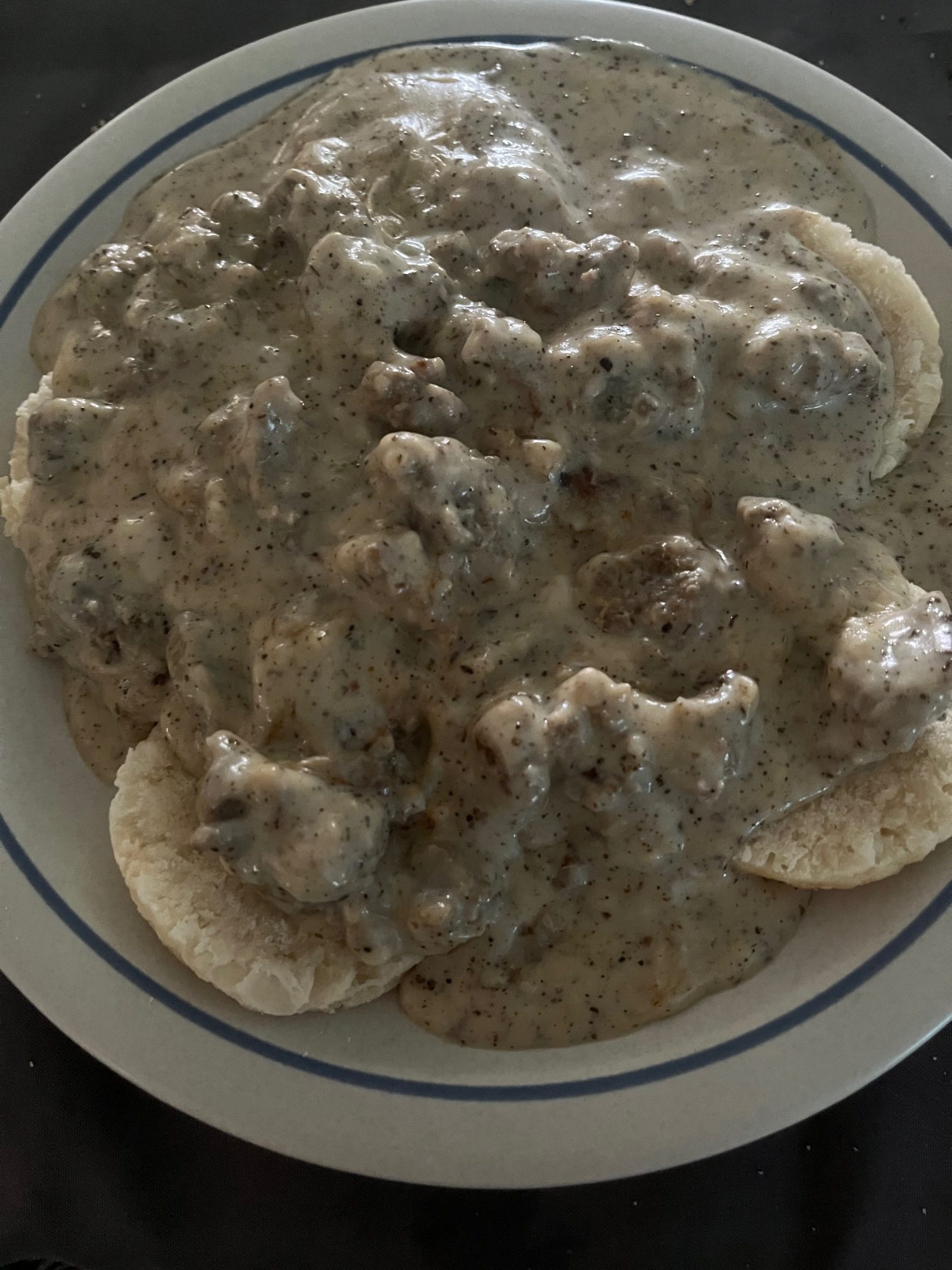 - Spoon the sausage gravy over warm biscuits and serve immediately!