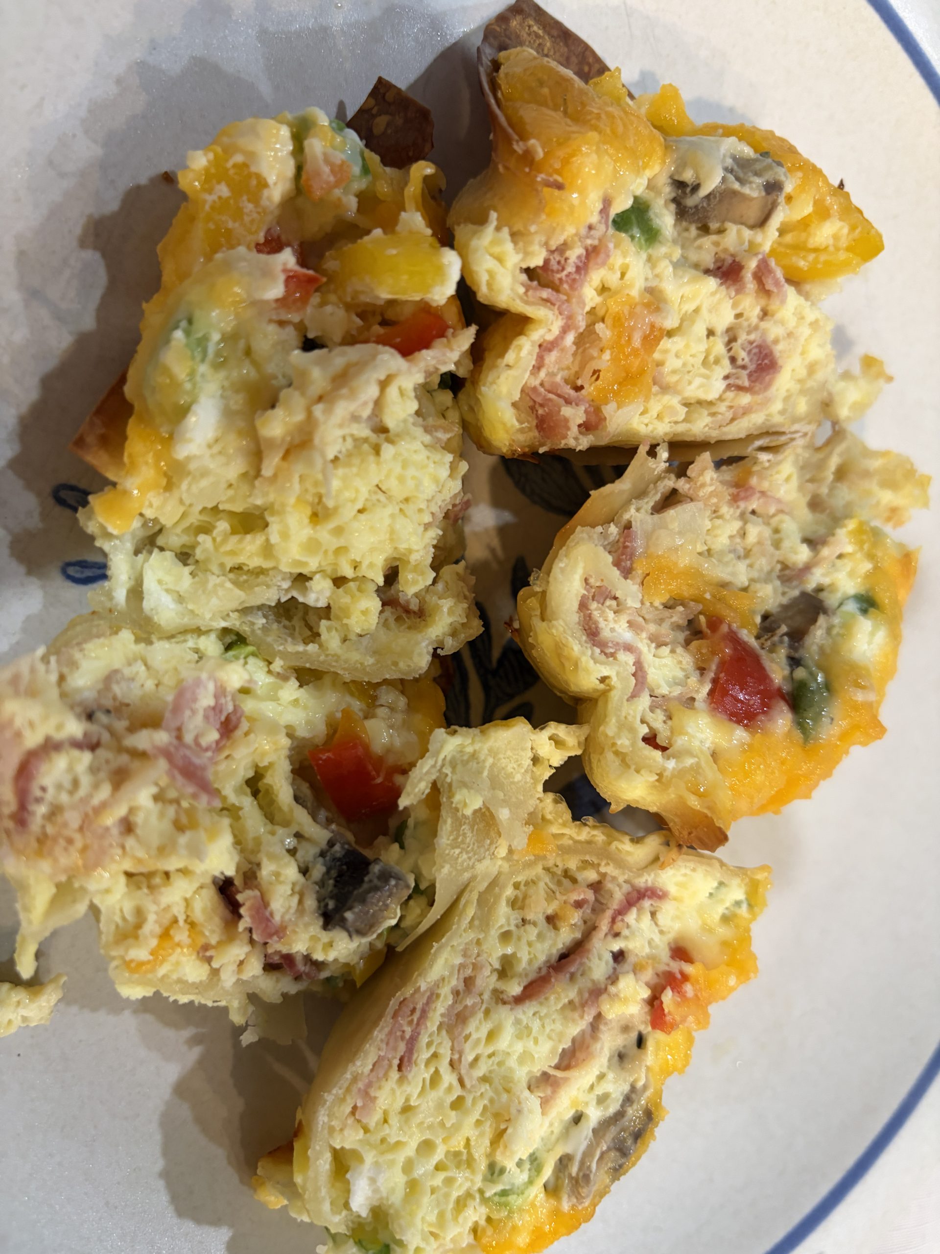 - Fill each muffin cup with your desired combination of protein, vegetables, and cheese. Bake for 14 to 16 minutes or until the dough is golden brown. This may vary due to ingredient and crust. Let the cups cool in the pans for 10 minutes before removing them. Serve with assorted toppings, as desired.