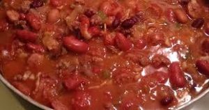 - Add tomatoes, beans, tomato sauce, chilies, chili powder, cumin, salt and pepper to meat mixture; stir to combine. Cover. Return to microwave and cook until hot and bubbly. Stir in the middle of the time to ensure uniform cooking of the dish. Ladle into bowls, and top with sour cream and onions, if desired.